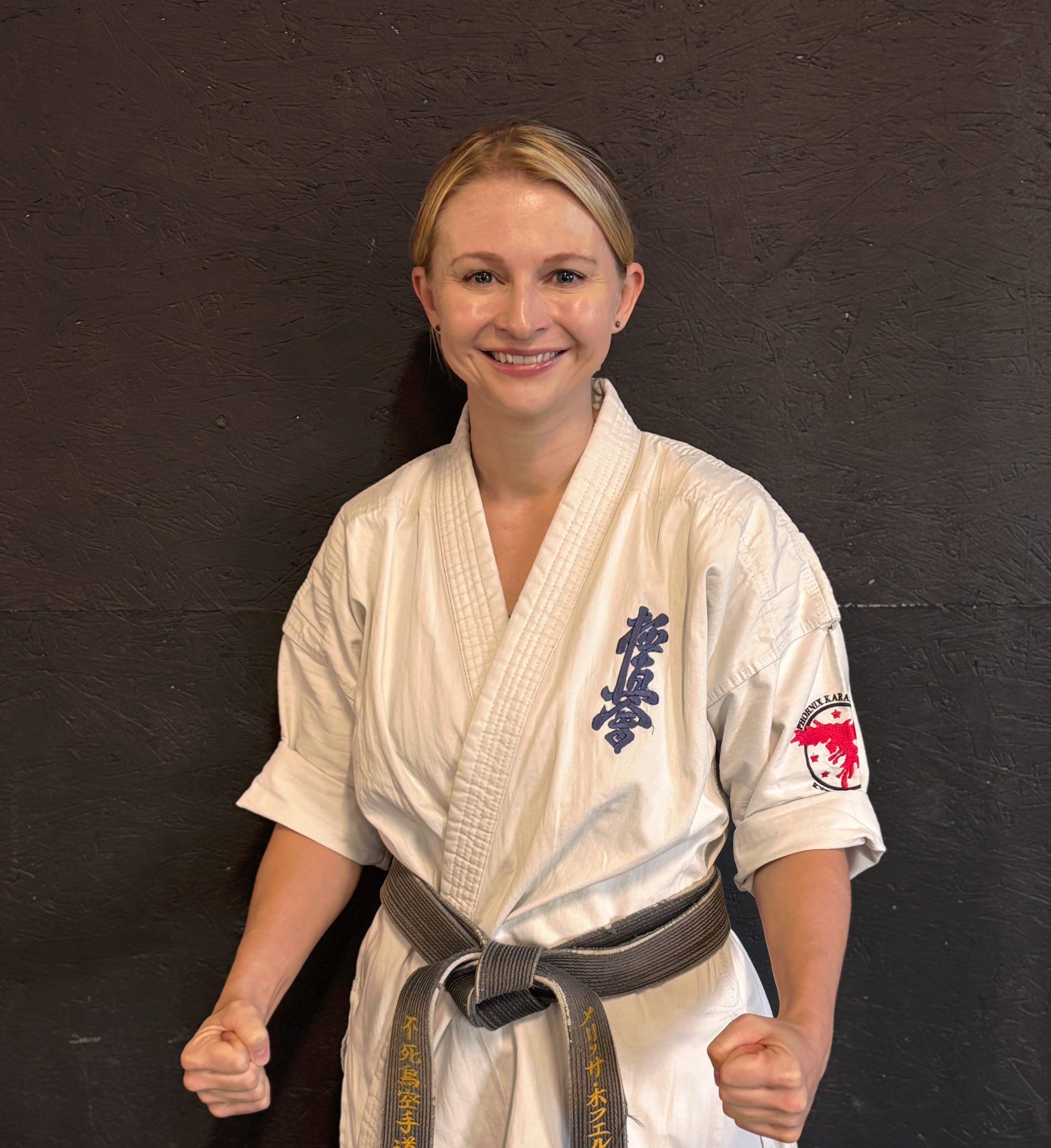 Melissa is a fourth-degree Sensei in the Phoenix Karatedo Association Kyokushinkai International. She began her journey with Kyokushin nearly 20 years ago in Rockville, Maryland, and has been teaching the art for more than a decade. Guided by a favorite lesson from her Phoenix Karate mentors — “have dogi, will travel” — she and Shihandai Brad have trained at dojos in Tokyo and Okinawa, Japan, as well as various countries around Europe. She is dedicated to not only developing the best version of herself through budo karate but helping others pursue the perfection of character through hard training and perseverance in the dojo.